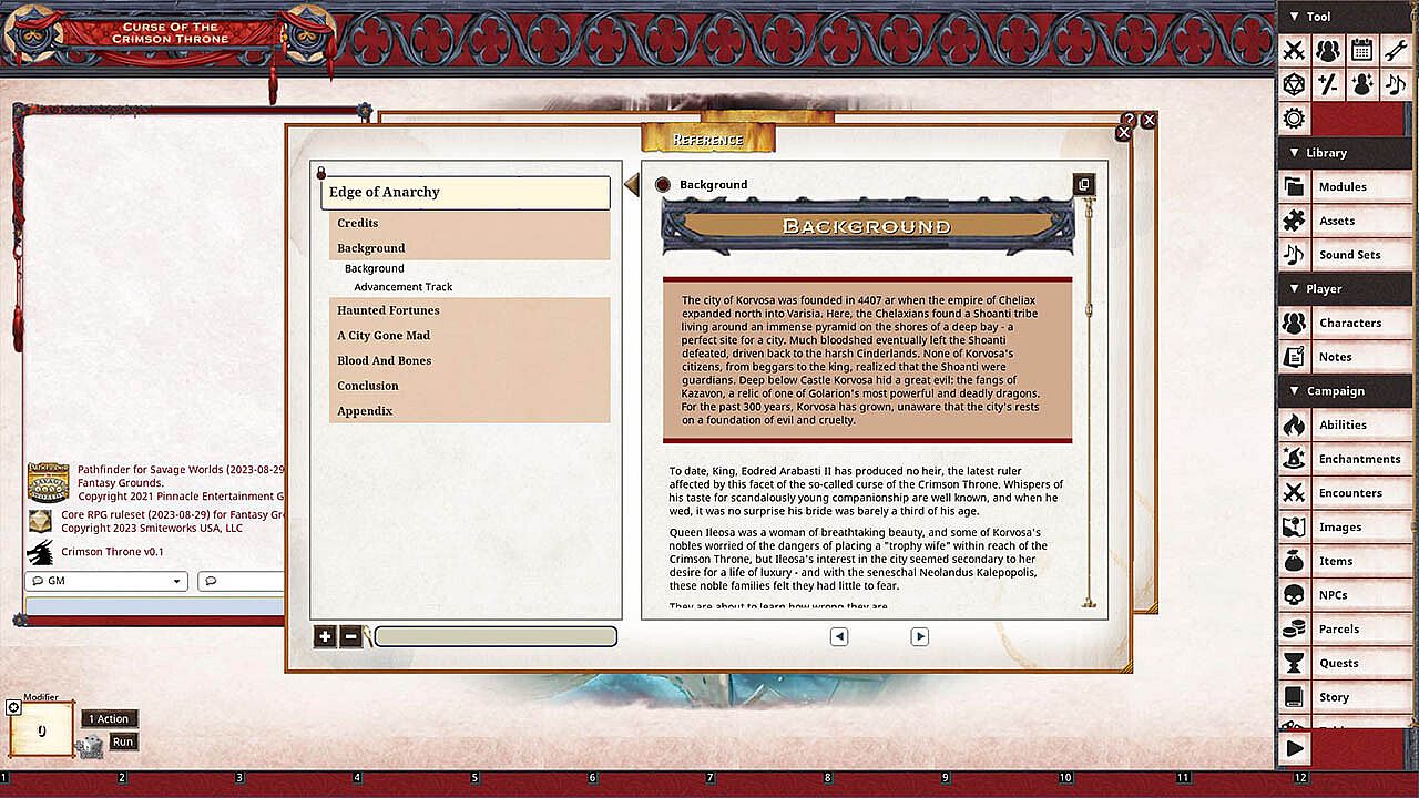 About Fantasy Grounds - Pathfinder(R) for Savage Worlds: Curse of the Crimson Throne - Book 1: Edge of Anarchy