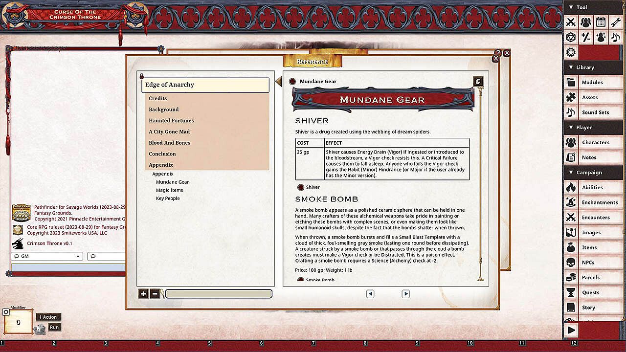 Before you start looking for a cheap Fantasy Grounds - Pathfinder(R) for Savage Worlds: Curse of the Crimson Throne - Book 1: Edge of Anarchy CD Key, take a moment to check the essentials. Developed by SmiteWorks USA, LLC. PC released date: 08 Nov 2023. Genres: Strategy, Indie, RPG. Categories: Multi-player, Family Sharing, Co-op, Single-player, Downloadable Content, Cross-Platform Multiplayer, Shared/Split Screen Co-op, Shared/Split Screen, Online Co-op, LAN Co-op.