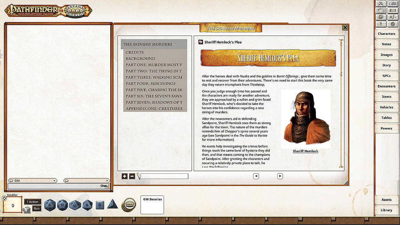 Fantasy Grounds - Pathfinder(R) for Savage Worlds: Rise of the Runelords! Book 2 - The Skinsaw Murders - about the game
