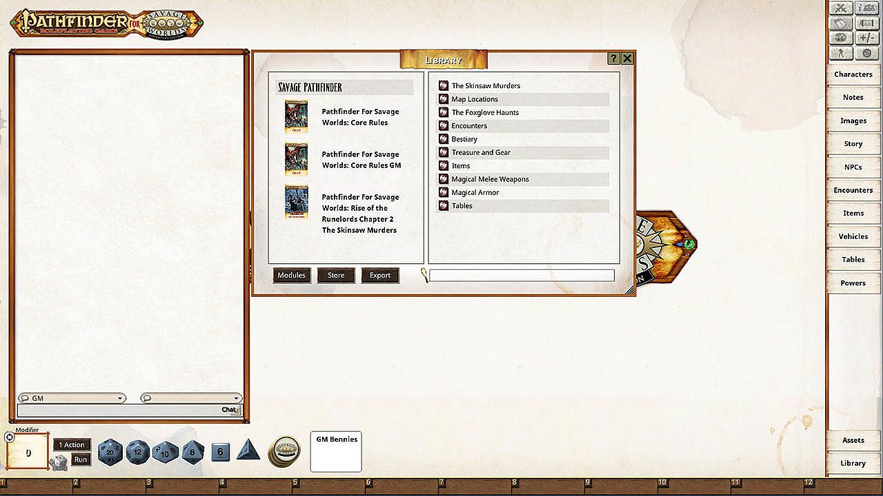 Requires: An active subscription or a one time purchase of a Fantasy Grounds Unity and the Pathfinder for Savage Worlds ruleset.