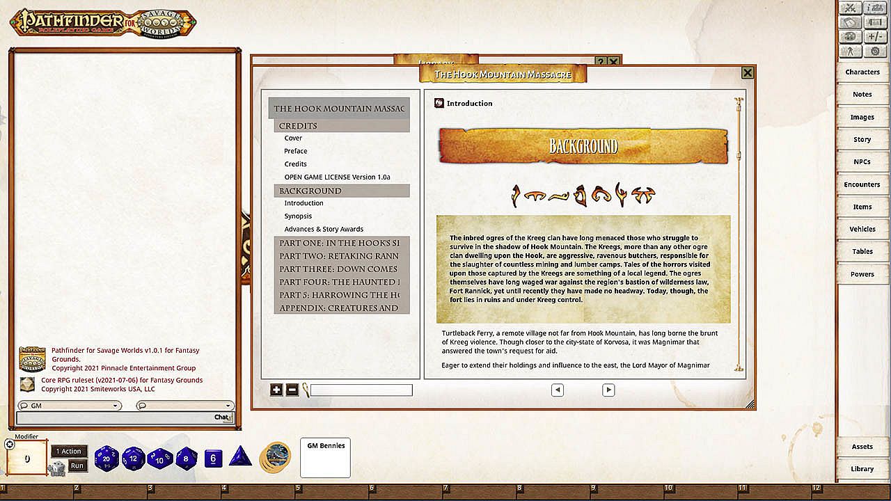 Before you start looking for a cheap Fantasy Grounds - Pathfinder(R) for Savage Worlds: Rise of the Runelords! Book 3 - The Hook Mountain Massacre CD Key, take a moment to check the essentials. Developed by SmiteWorks USA, LLC. PC released date: 05 Oct 2021. Genres: Strategy, Indie, RPG. Categories: Multi-player, Family Sharing, Co-op, Single-player, Downloadable Content, Cross-Platform Multiplayer, Shared/Split Screen Co-op, Shared/Split Screen, Online Co-op, LAN Co-op, Partial Controller Support.