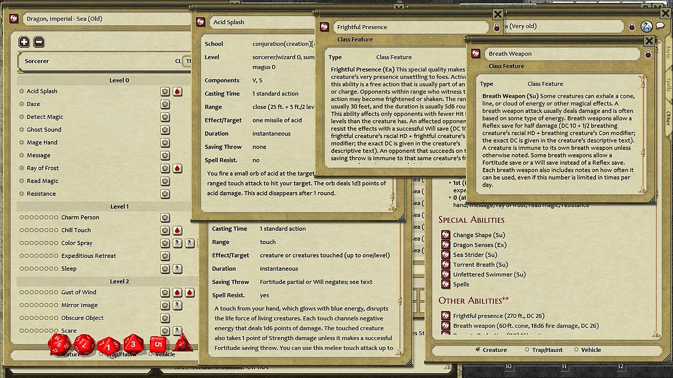 - Special abilities and spells linked to the NPC records for ease of reference and use during combat
