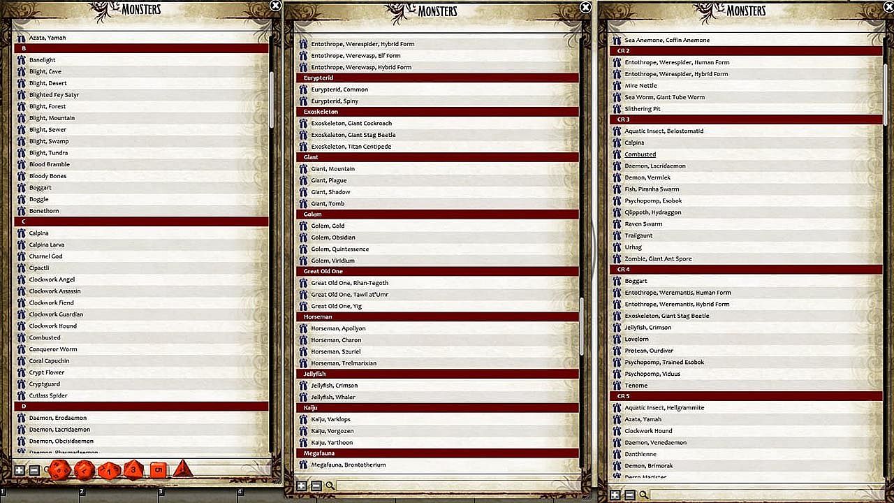 • Tokens for nearly every monster