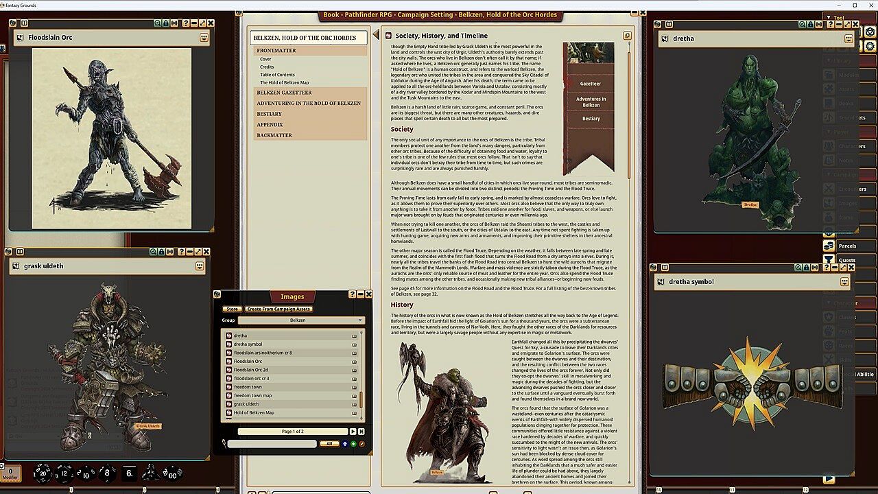 - Information on the terrifying orc gods, such as Dretha the Dark Mother and the Blood God, Nulgreth.