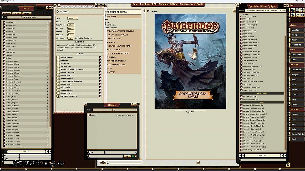 - Rules for the proctor prestige class, along with information about different monitor sects, mantras for summoning monitors, and esoteric occult rituals that harness the power of monitor divinities.