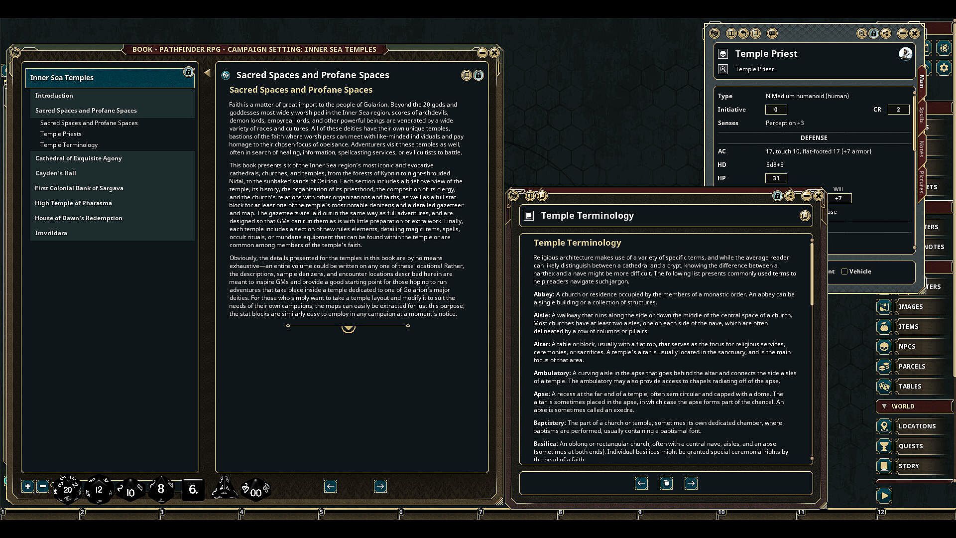 Nearly every settlement in the Inner Sea has at least one temple, ranging from the modest shrines of remote hamlets to massive cathedrals in metropolises. Temples can act as centers of commerce, community, healing, and sacrifice for adventurers and common folk alike.