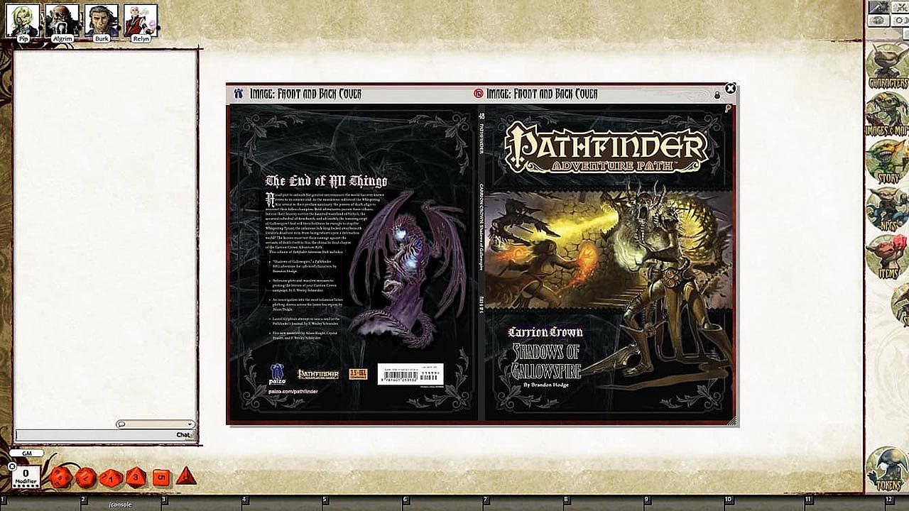 Requires: An active subscription or a one time purchase of a Fantasy Grounds Full or Ultimate license and the included Pathfinder ruleset.