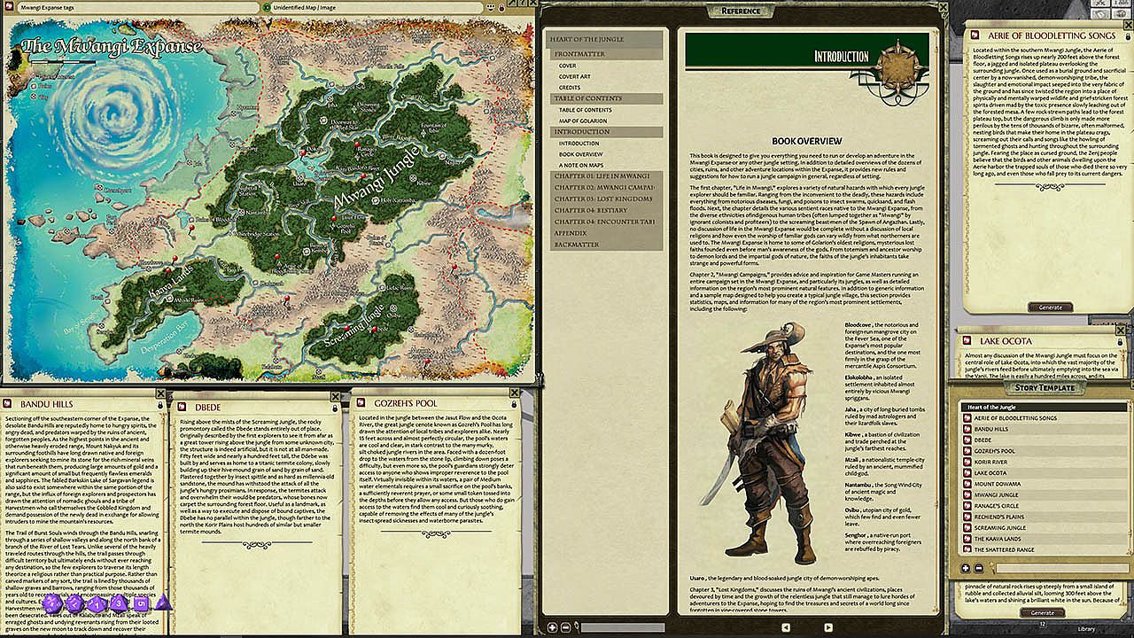• Information on the many cultures of the Mwangi Expanse, encompassing both the major human tribes and the jungle's more alien and monstrous denizens.