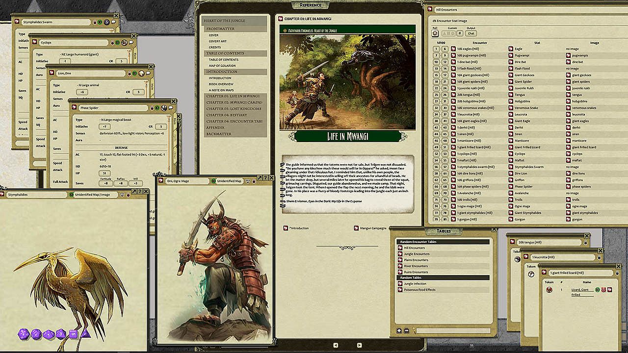 • Massive random encounter tables for multiple jungle adventure terrain types.