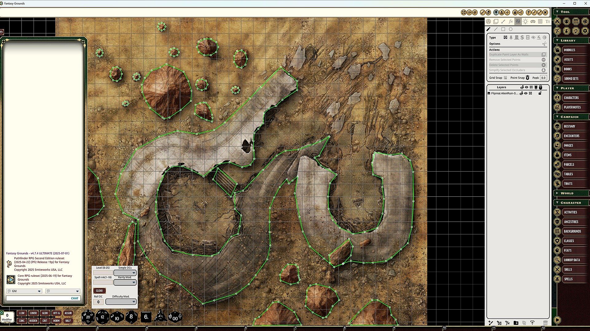 Bring mystery and wonder to your Pathfinder RPG sessions with alien ruins maps in Fantasy Grounds. These detailed flip-mats depict crash-landed spaceships or otherworldly architecture, perfect for unexpected encounters. Game Masters gain ready-to-use fantasy set pieces that enhance tabletop play. Maps come resized with preset grids for easy combat management on PC. All images and handouts from the product sit ready to share with players. Built for the Pathfinder ruleset in Fantasy Grounds, this tool works across Pathfinder 2.0, 5E, Starfinder, Starfinder 2.0, and other supported systems-ideal for busy GMs running RPG campaigns.