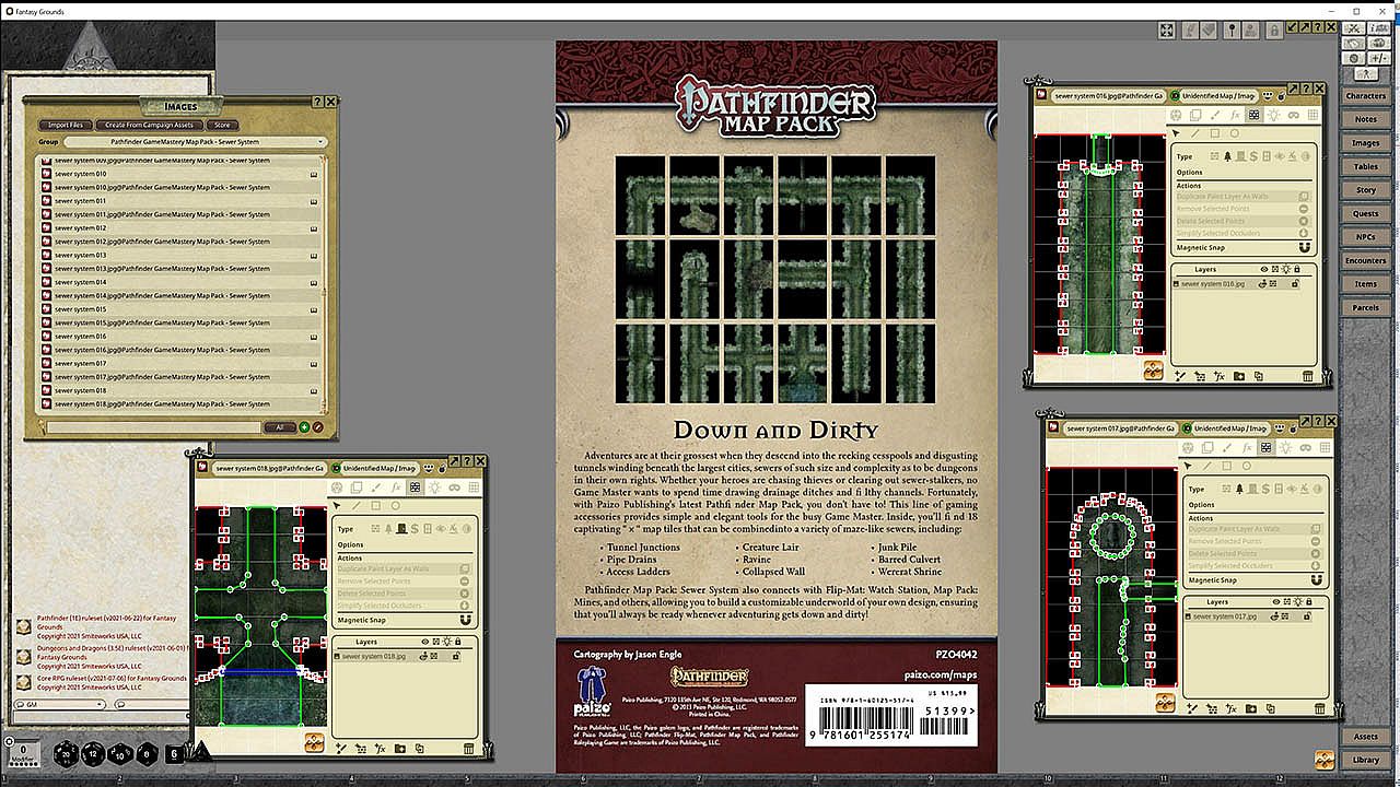 Down and DirtyAdventures are at their grossest when they descend into the reeking cesspools and disgusting tunnels winding beneath the largest cities, sewers of such size and complexity as to be dungeons in their own rights. Whether your heroes are chasing thieves or clearing out sewer-stalkers, no Game Master wants to spend time drawing drainage ditches and filthy channels. Fortunately, with Paizo Publishing's latest Pathfinder Map Pack , you don't have to! This line of gaming accessories provides simple and elegant tools for the busy Game Master. Inside, you'll find 18 captivating 5" 8" map tiles that can be combined into a variety of maze-like sewers, including: