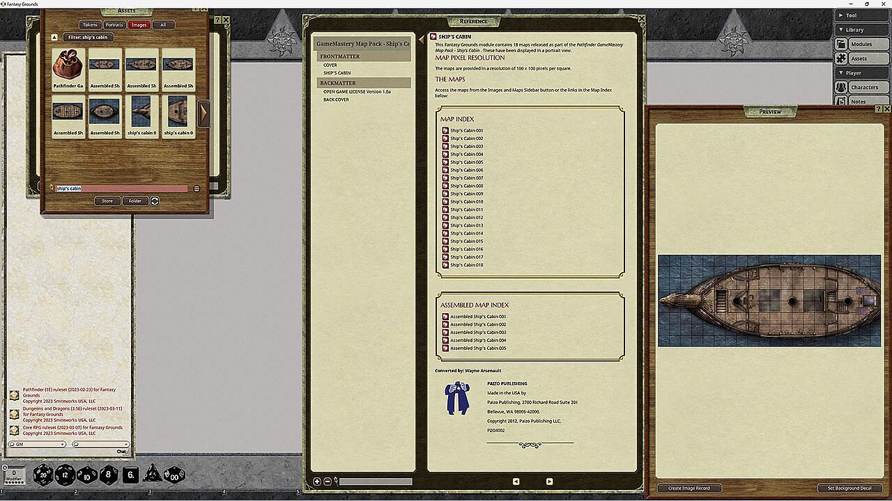 Fantasy Grounds - Pathfinder RPG - GameMastery Map Pack: Ship's Cabin - about the game