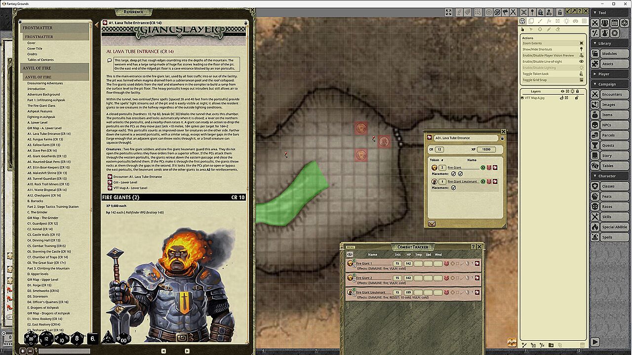 - Tokens for each encounter are all pre-placed in starting locations on the map. You can edit these on the fly.