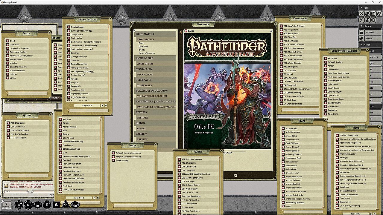 - "Anvil of Fire," a Pathfinder adventure for 13th-level characters, by Sean K Reynolds.