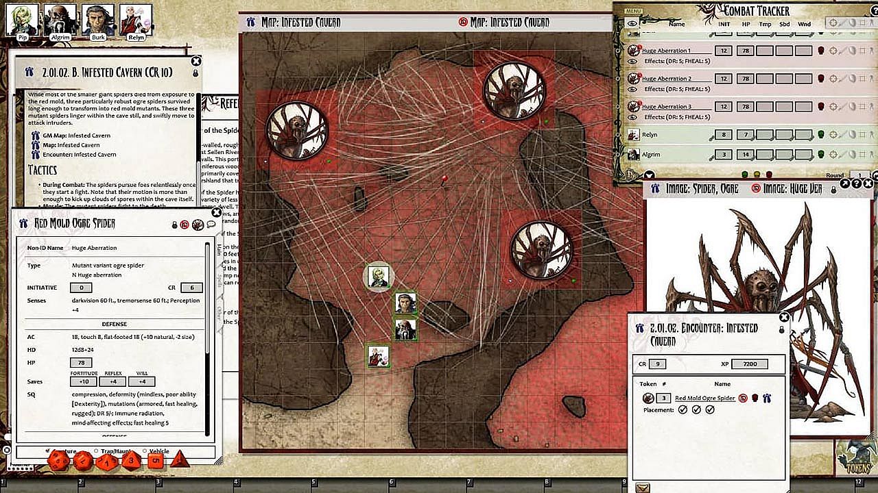 - Tokens for each encounter are all pre-placed in starting locations on the map. You can edit these on the fly.