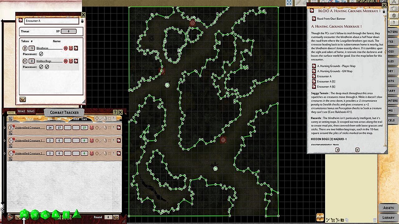 • Tokens for each encounter are all pre-placed in starting locations on the map. You can edit these on the fly.