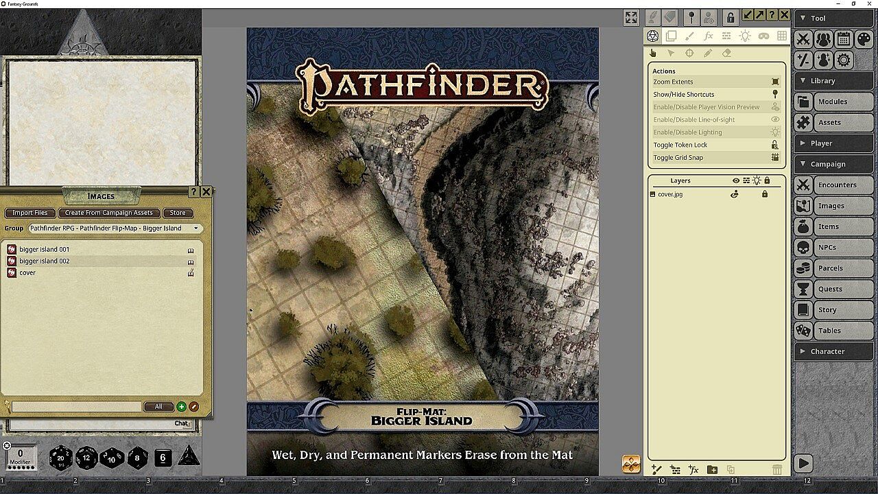 What mysteries await on the strange island on the horizon, or the mysterious destination of the intriguing treasure map? No Game Master wants to put the action on pause to draw every twist in the coastline or intriguing feature on an uncharted isle. Fortunately, you don't have to! This line of gaming maps provides ready-to-use and captivatingly detailed fantasy set pieces for the busy Game Master. Whether the heroes find themselves marooned on a remote shore or have sought the island out to track down a fabled treasure, these combat map features two different islands for you to use at your table. Don't waste your time sketching when you could be playing. With Pathfinder Flip-Mat: Bigger Island, you'll be ready next time your players make landfall!