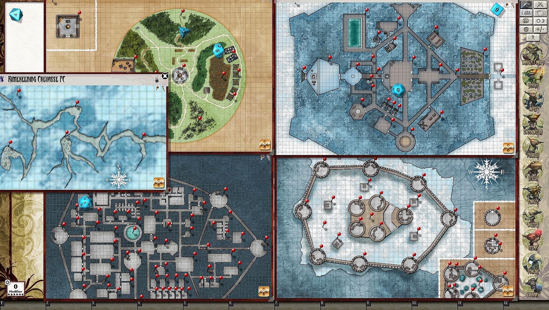 - Tokens for each encounter are all pre-placed in starting locations on the map. You can edit these on the fly.