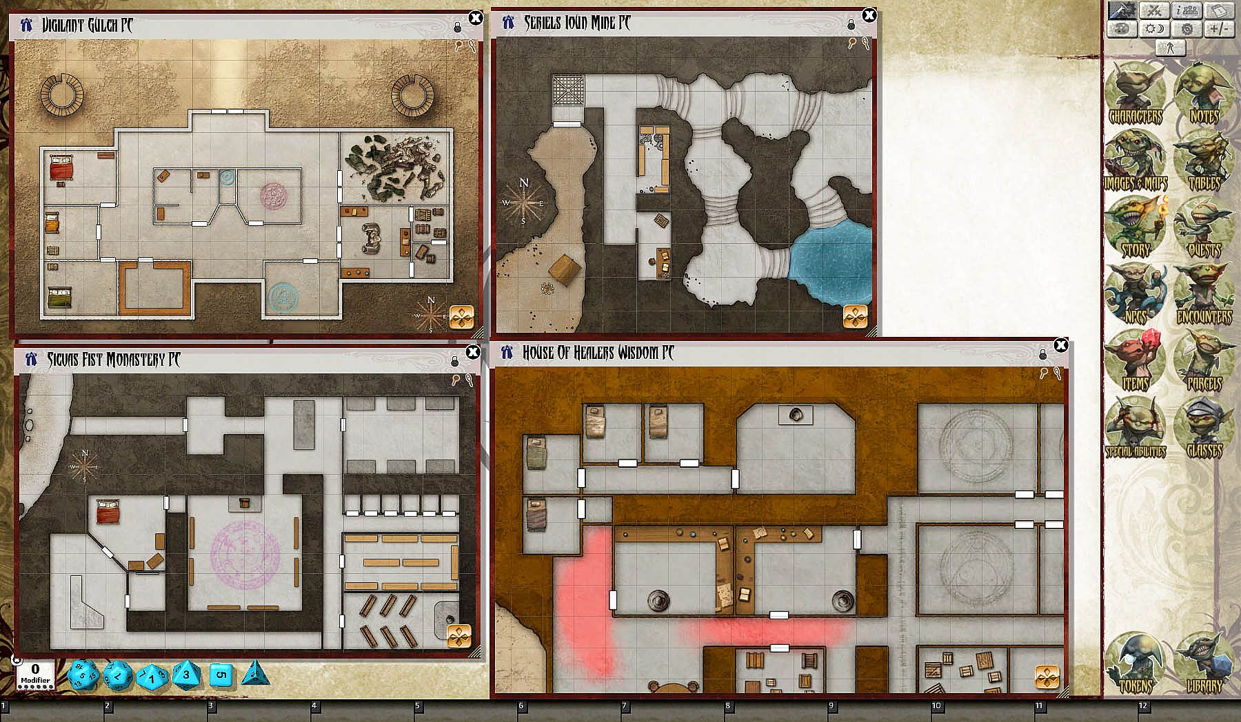 - All maps resized and set up with a preset grid to make combats easy to manage