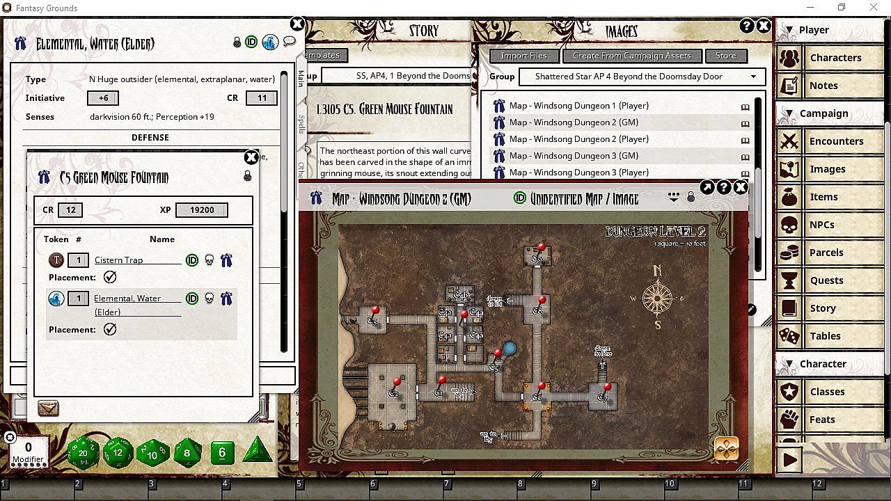 • Tokens for each encounter are all pre-placed in starting locations on the map. You can edit these on the fly.