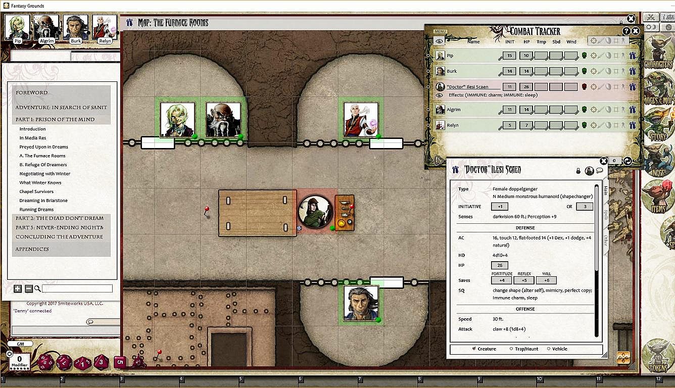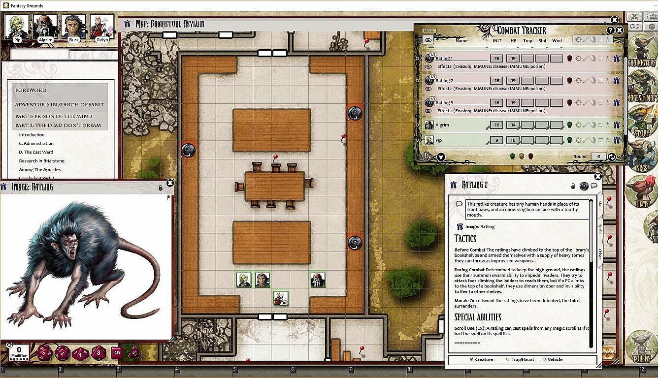 • Tokens for each encounter are all pre-placed in starting locations on the map. You can edit these on the fly.
