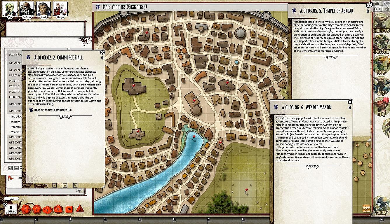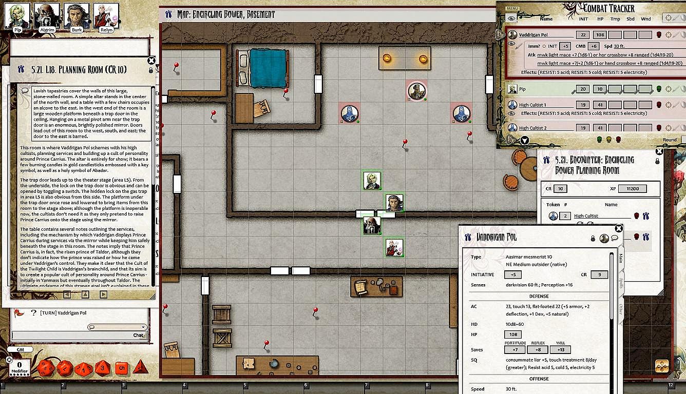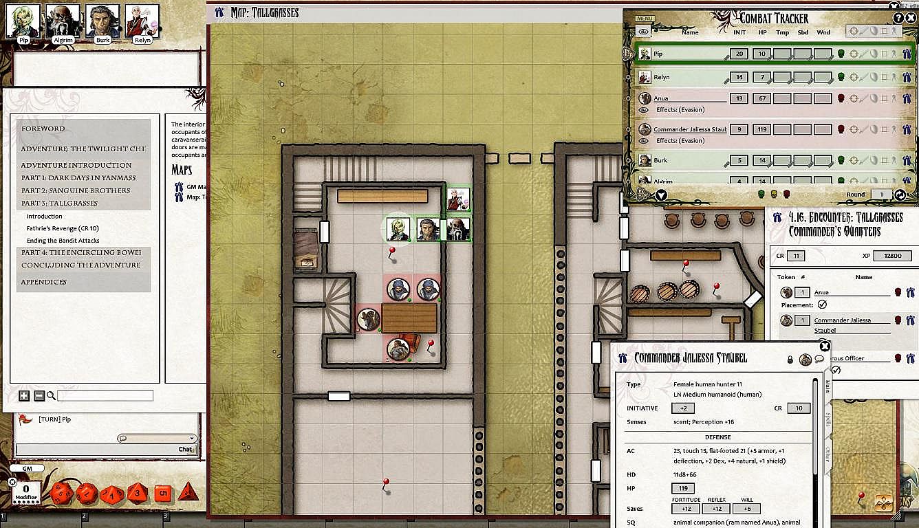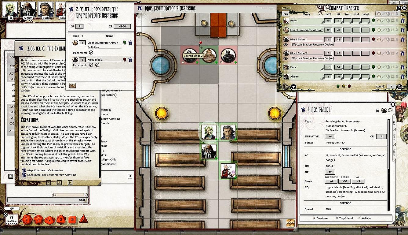 • Tokens for each encounter are all pre-placed in starting locations on the map. You can edit these on the fly.
