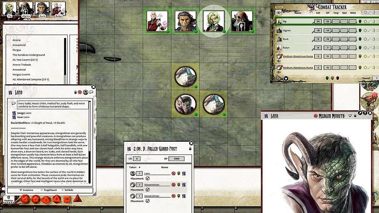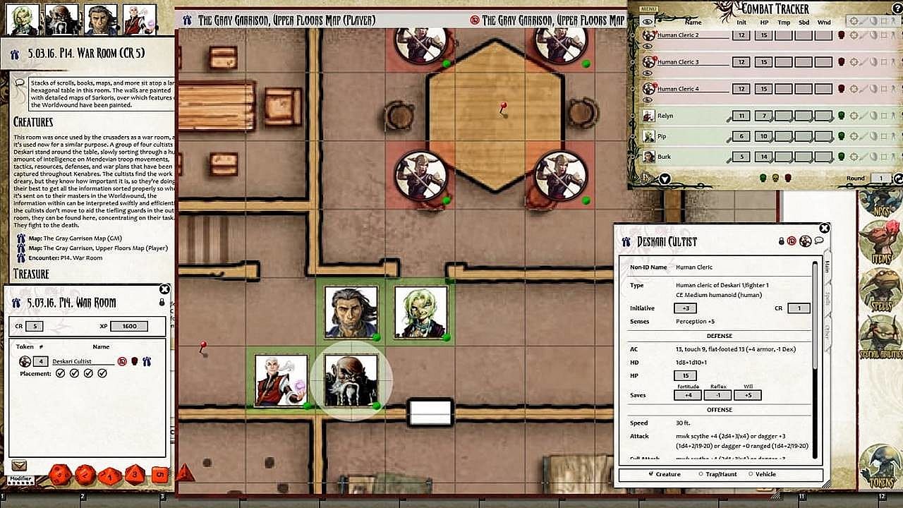 - Tokens for each encounter are all pre-placed in starting locations on the map. You can edit these on the fly.