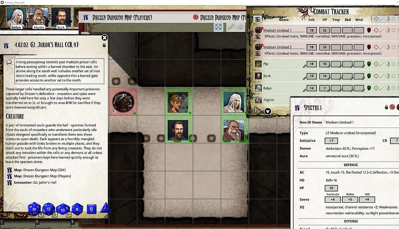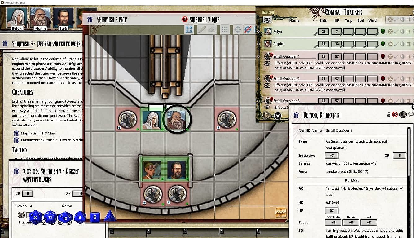 • Tokens for each encounter are all pre-placed in starting locations on the map. You can edit these on the fly.