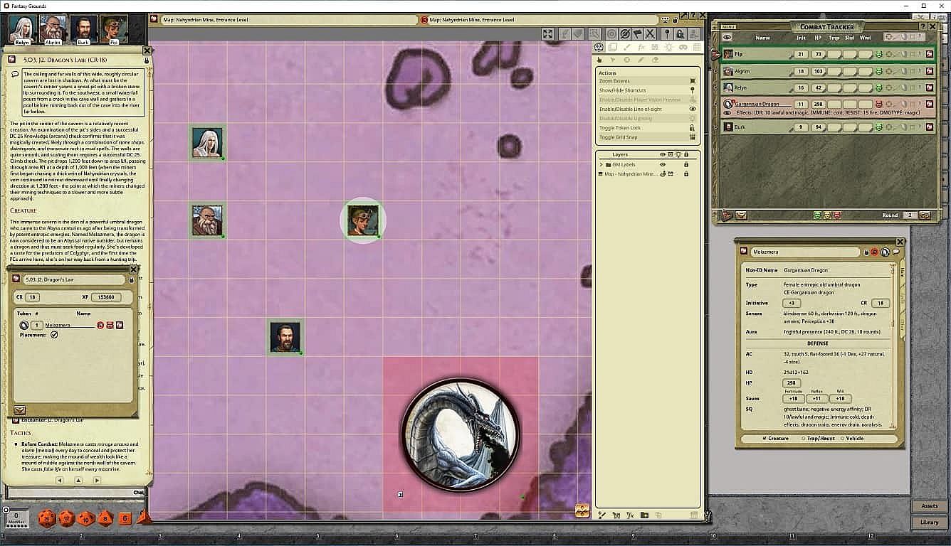 • Tokens for each encounter are all pre-placed in starting locations on the map. You can edit these on the fly.