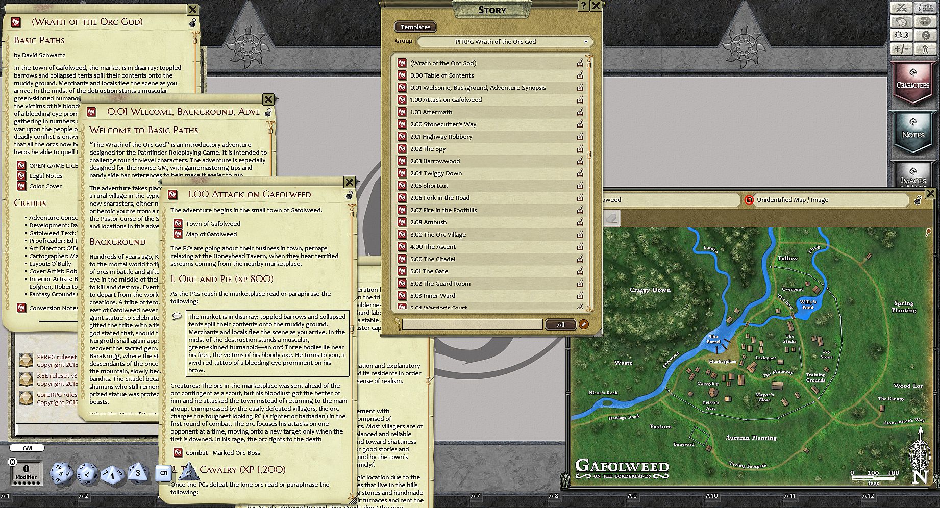 “The Wrath of the Orc God” is an introductory adventure designed for the Pathfinder Roleplaying Game. It is intended to challenge four 4th-level characters. The adventure is especially designed for the novice GM, with gamemastering tips and handy side bar references to help make it easier to run.