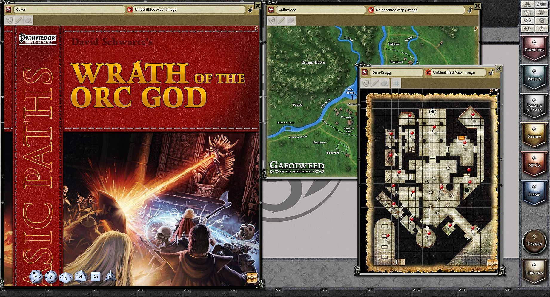 - Five battlemaps for tactical gaming and a dungeon with each room linked to a map location