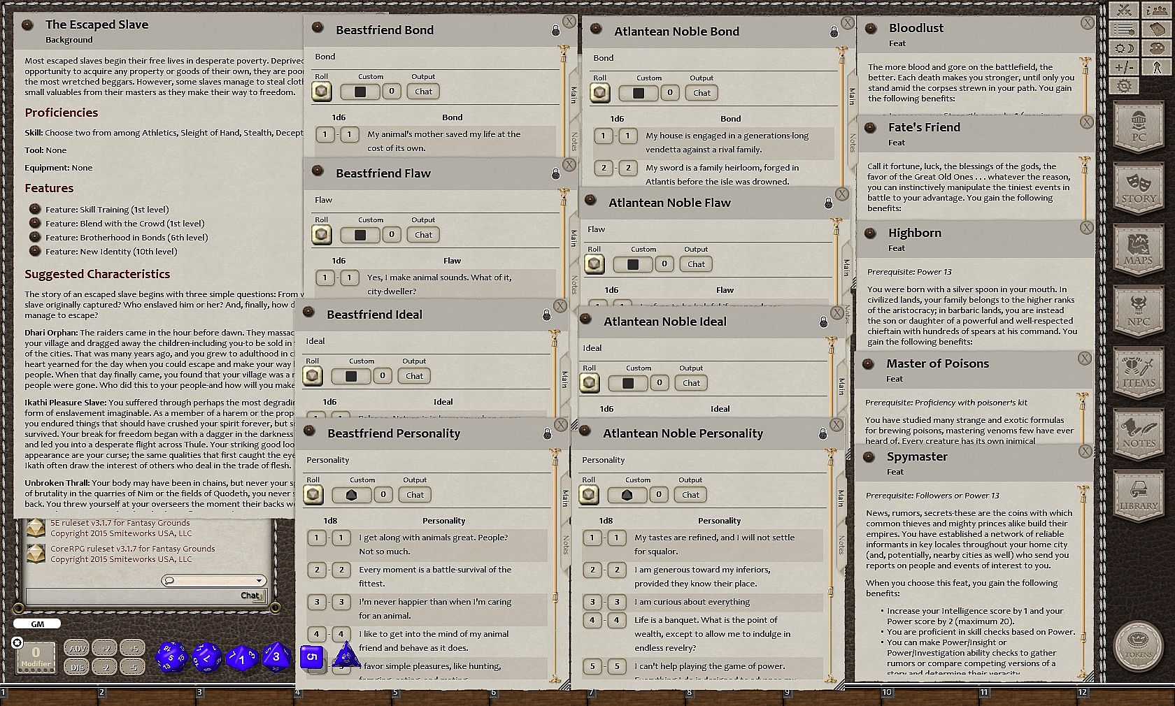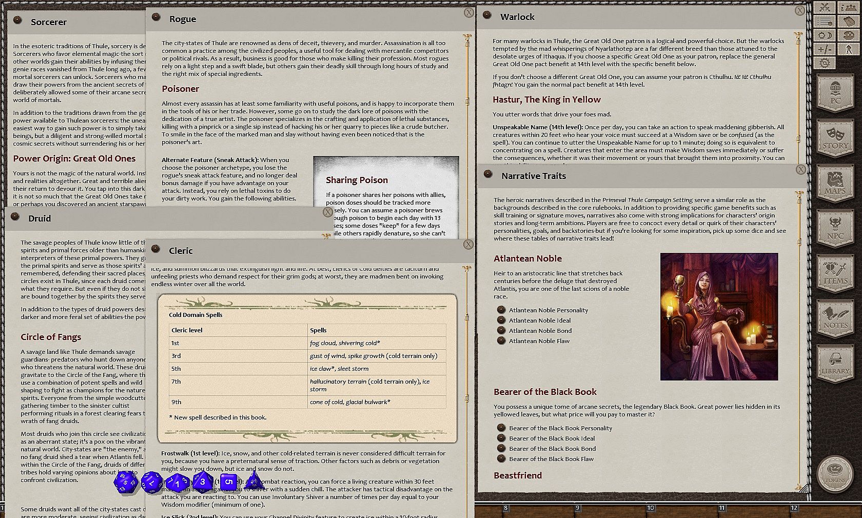 • Personality and trait tables for all character narratives introduces in the Primeval Thule Campaign Setting book.