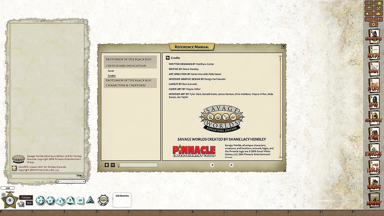 Requires: An active subscription or a one time purchase of a Fantasy Grounds Full or Ultimate license and a one time purchase of the Savage Worlds Adventure Edition ruleset.