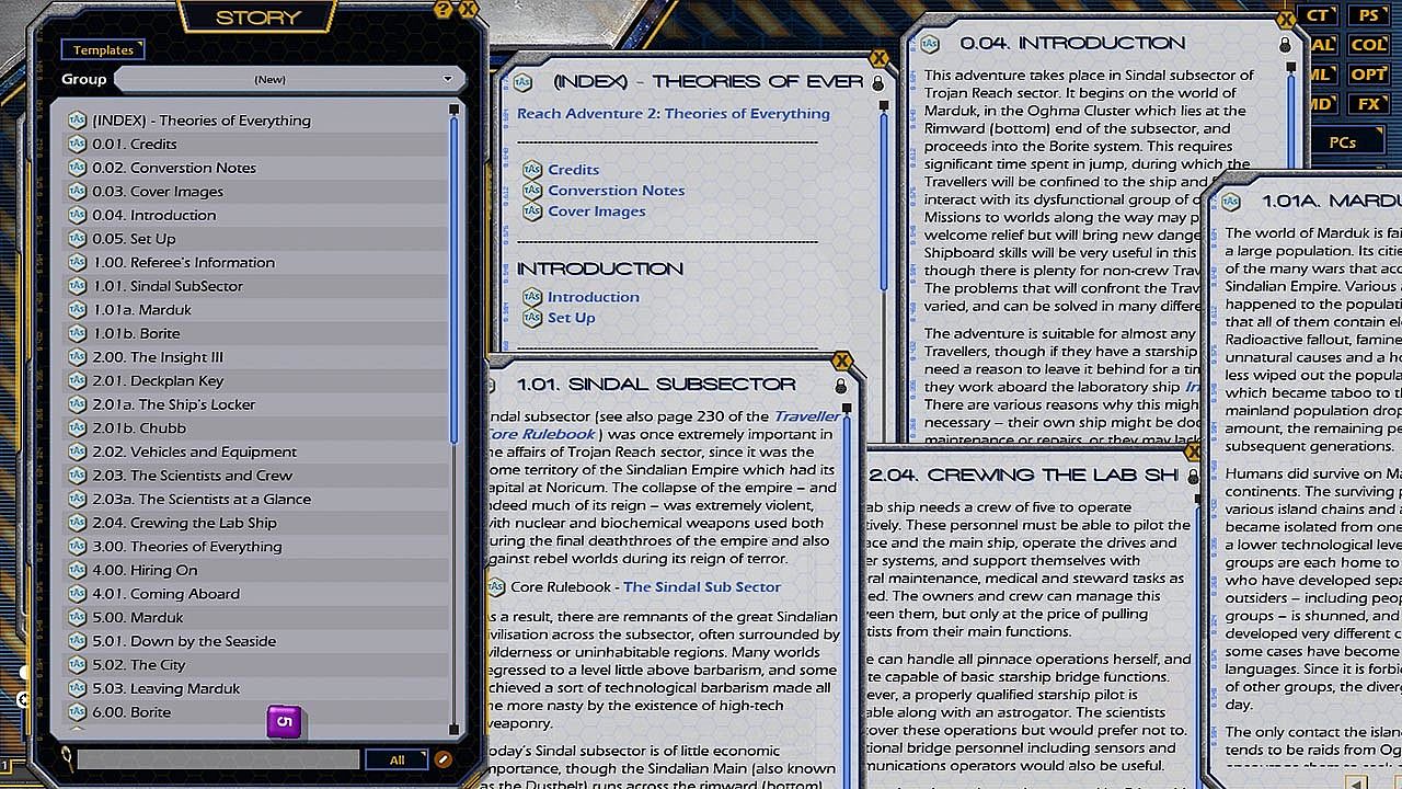 In Reach Adventure 2: Theories of Everything the Travellers are hired as crew and research assistants aboard the laboratory vessel Insight III. The ship is owned by a cooperative of scientists working in a cross-discipline environment to solve problems and discover knowledge as they journey across the vast reaches of space... or so they claim. In fact, Insight III is basically a jump-capable shouting match as its owners bicker, squabble and argue their erratic way across a dangerous subsector.