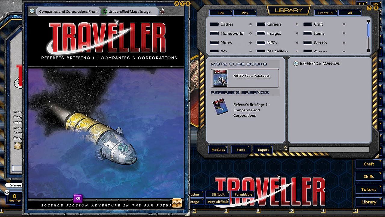 Requires: An active subscription or a one time purchase of a Fantasy Grounds Full or Ultimate license and a one time purchase of the Traveller 2E (Mongoose) ruleset.