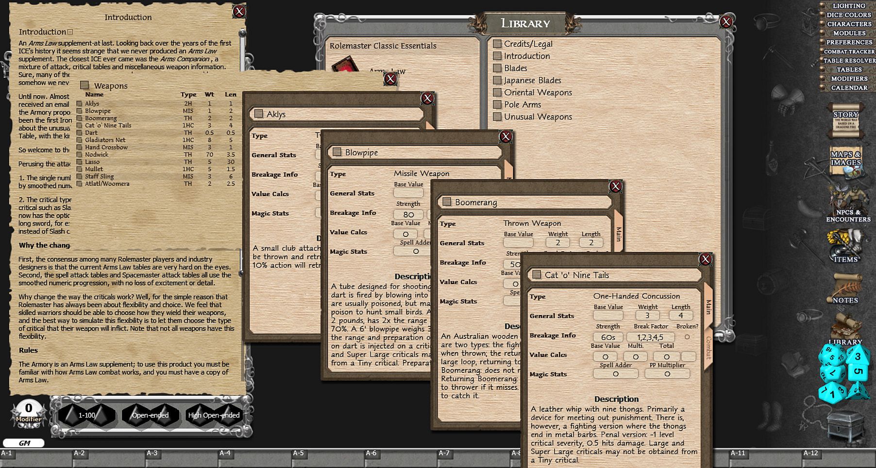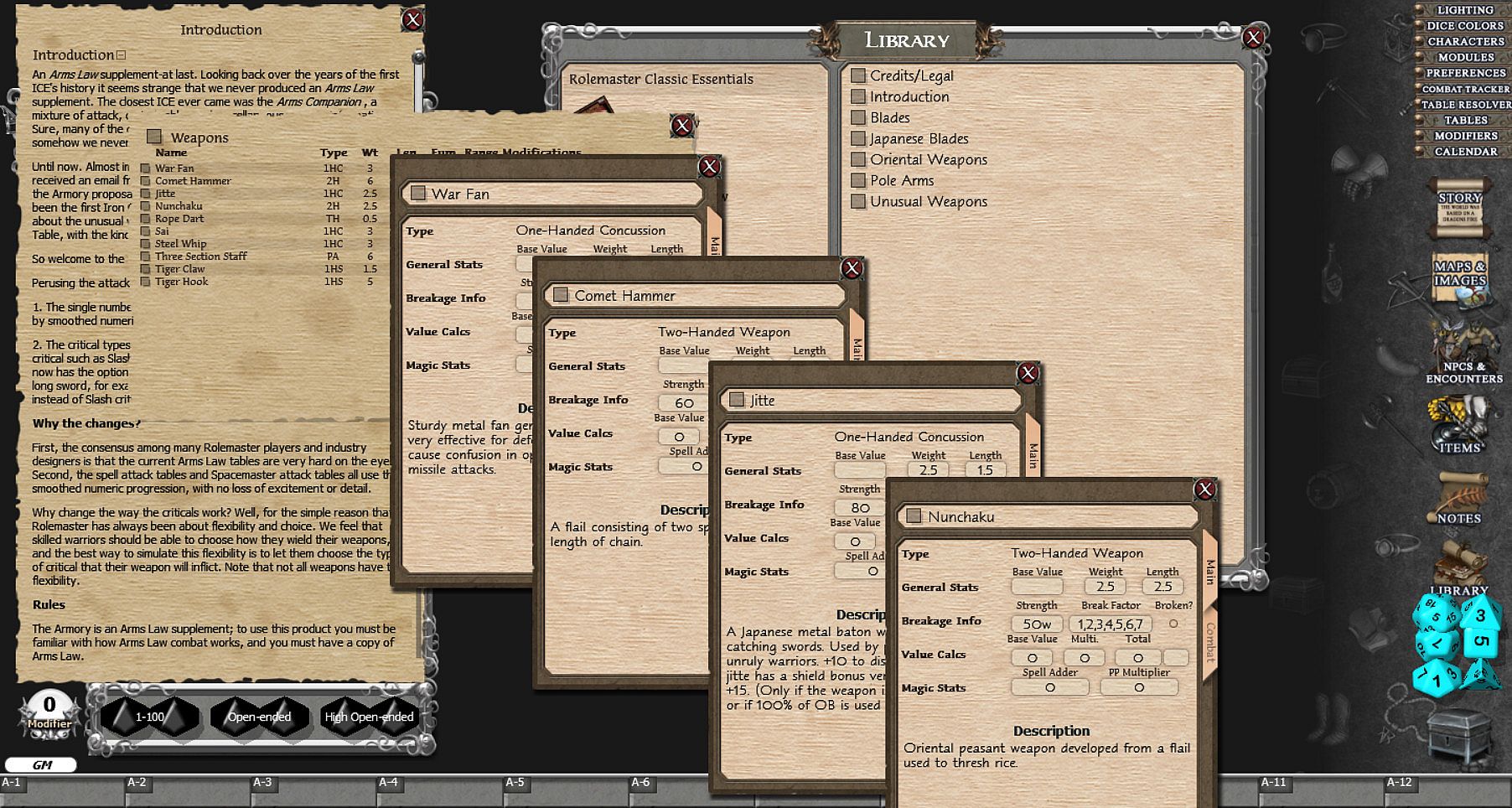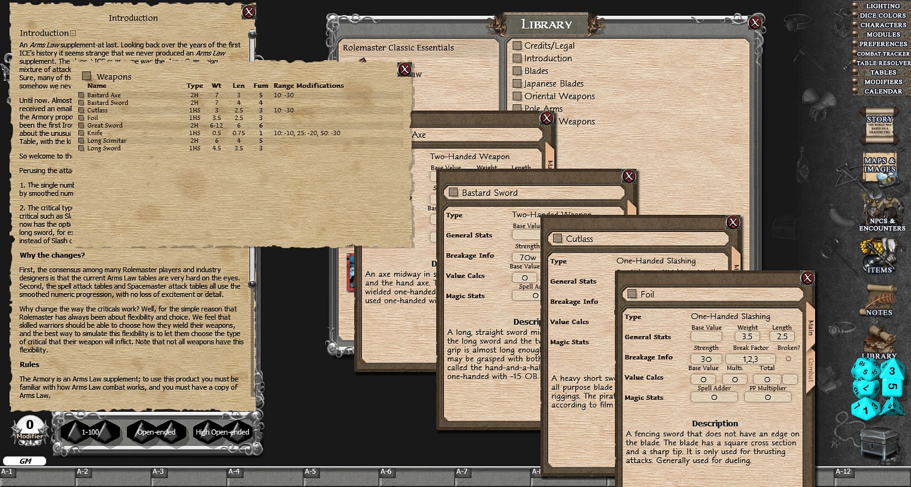 Fantasy Grounds - Rolemaster Classic: The Armoury - about the game