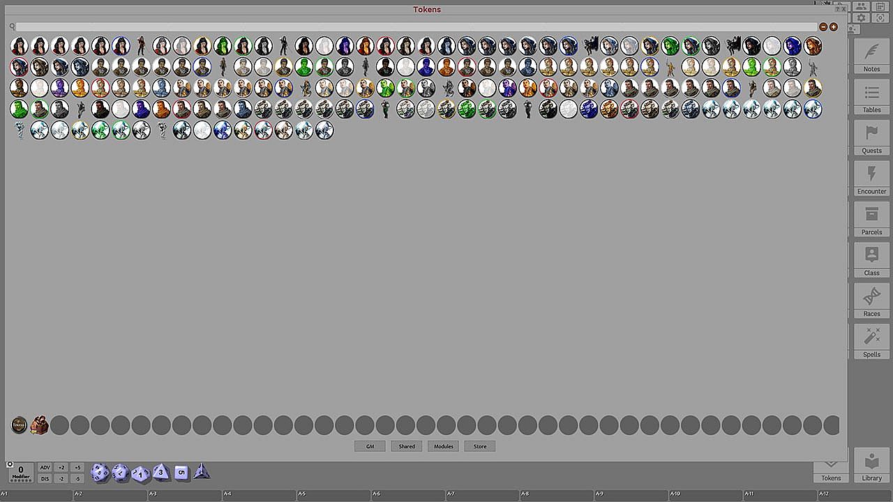 This token pack includes (ringed in black, blue, gold, green, greyscale, and silver, as well as ethereal, invisible, stone-skinned, sand-skinned, and altered state versions):