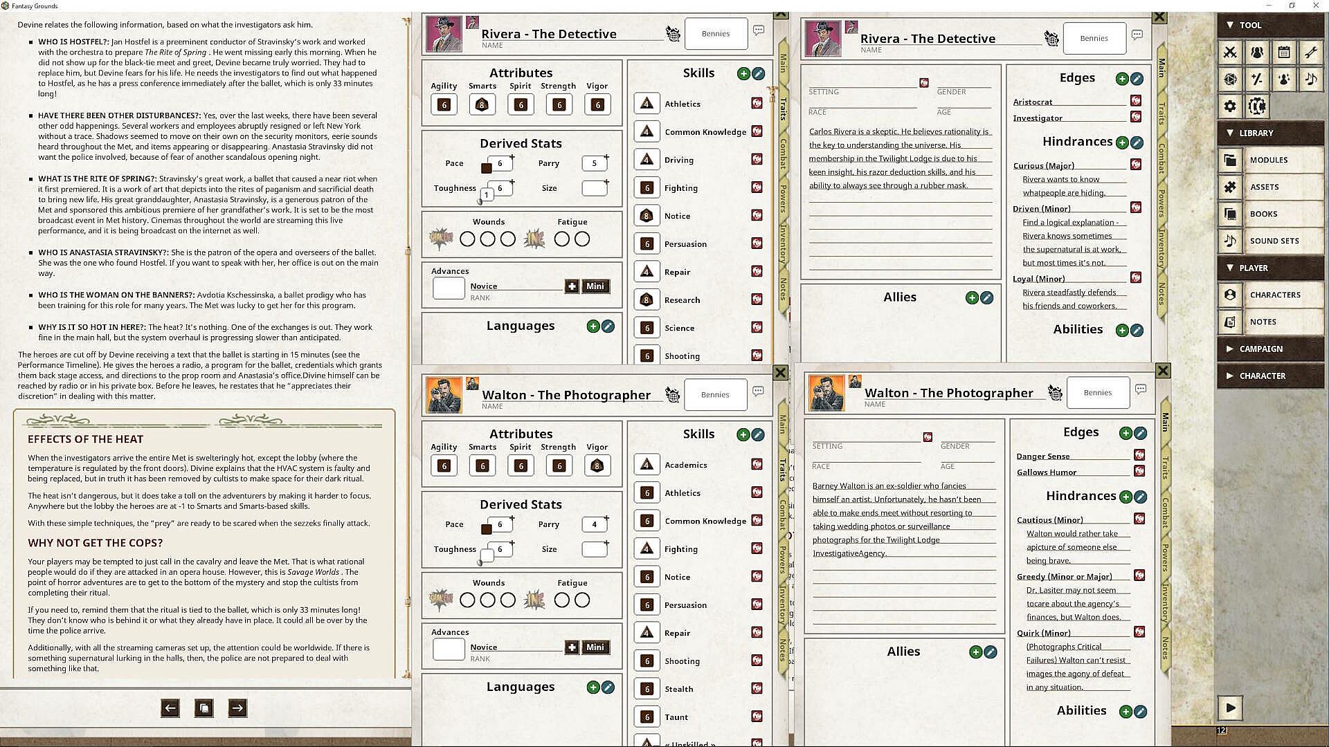 Savage Saturday Cinema adventures are designed to have everything you need for a game session (actually playing it on a Saturday night is optional). Characters are provided, but you can make your own. All you need to bring is some dice, a deck of cards, Savage Worlds, and a sense of adventure!