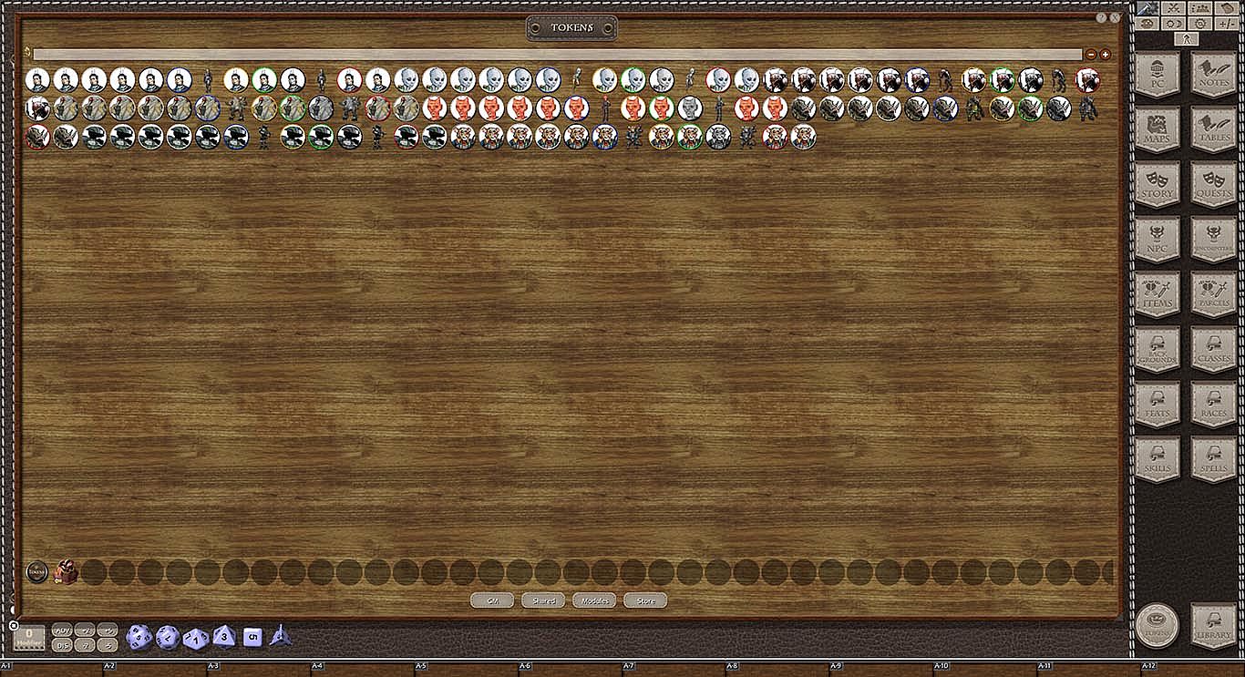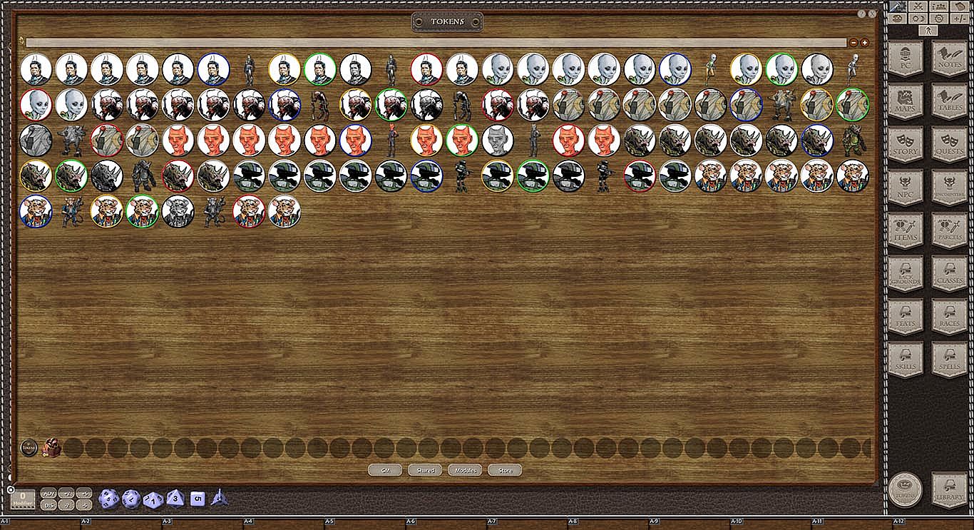 This token pack includes (ringed in black, blue, gold, green, greyscale, and silver):