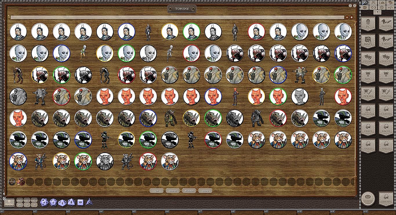 Take your game to the stars and into the depths of infinity with Monster Grin's 104 unique tokens of sci-fi species, each usable as PCs, NPCs, mooks, friends, or foes! Stunningly depicted science-fiction characters will become 'droids, 'bots, furry gangsters, galactic invaders, bug-like weirdos, or amazing aliens in your next thrilling adventure in the deepest reaches of the final frontier! Utilize Monster Grin's Token Halo System to create different types of teams (red, gold, green, black, silver, or blue), or even different levels of the same kind of creature (i.e. boss, high, medium, or low level) to help keep track of what’s what and who’s who and bring your game up to date!