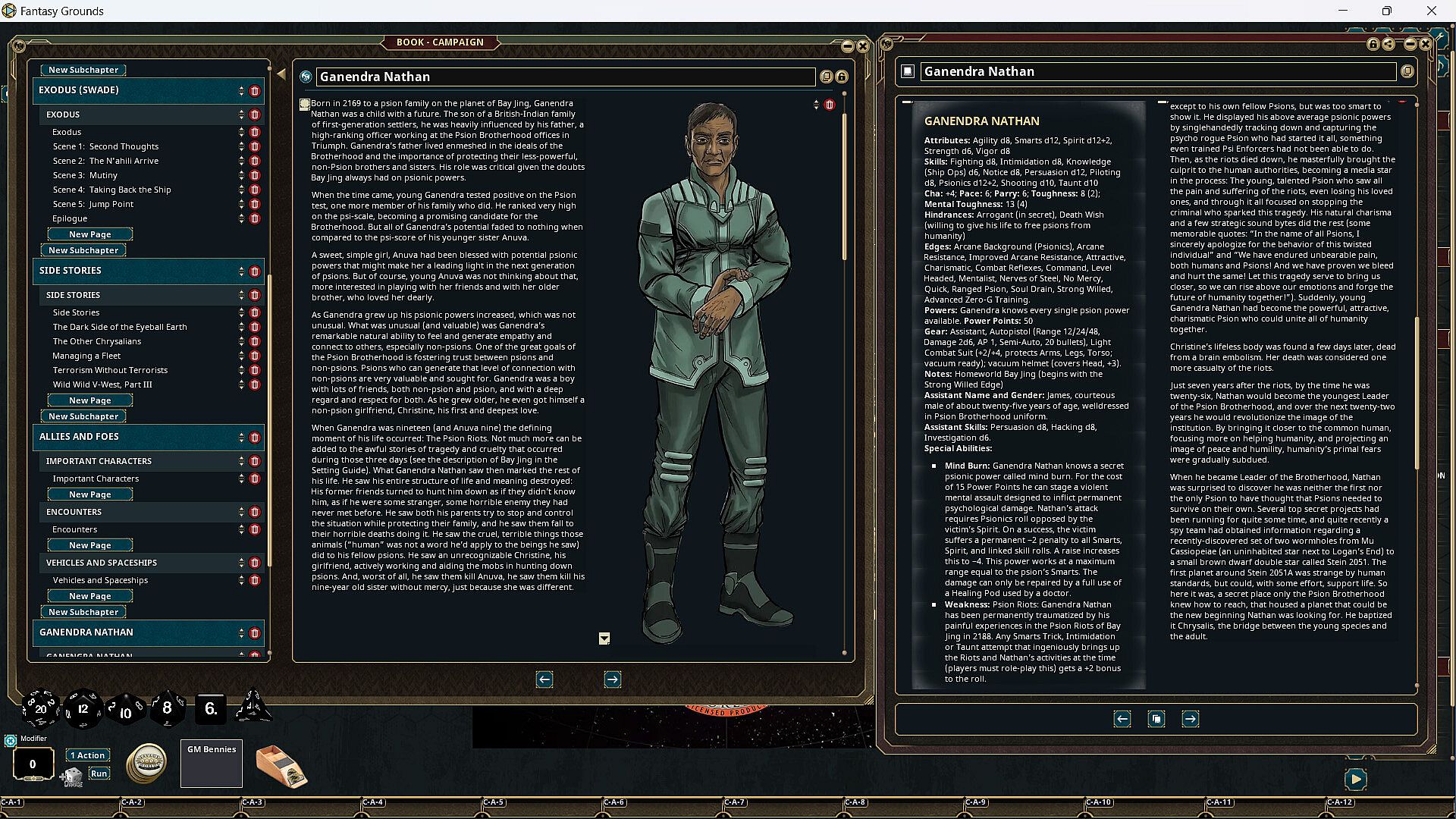 Exodus includes three side stories, a special Hacking subsystem for regaining control of the computers of a battleship; special rules to run a 3D battle inside a zero-G sphere; and expanded rules to simulate the management and leadership activities of a rag-tag space fleet!