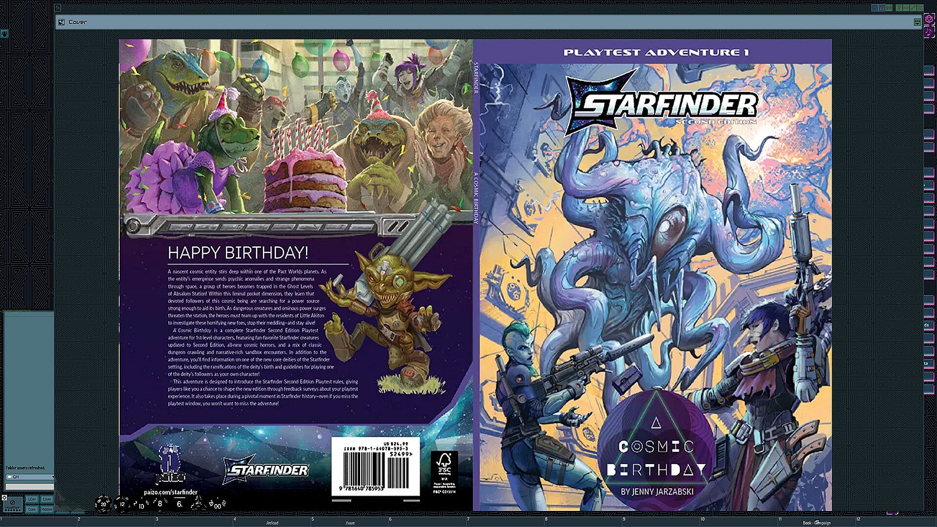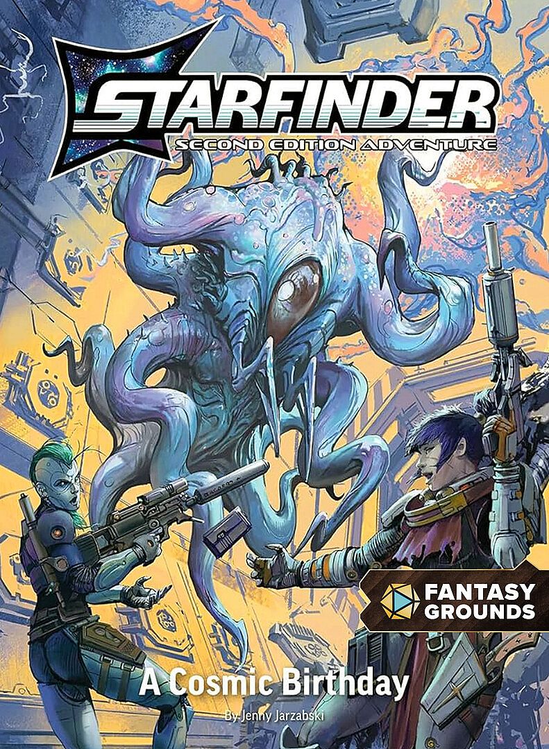 A Cosmic Birthday is a complete Starfinder Second Edition Playtest adventure for 1st-level characters written by Jenny Jarzabski, and features fan-favorite Starfinder creatures updated to Second Edition, all-new cosmic horrors, and a mix of classic dungeon crawling and narrative-rich sandbox adventures. This adventure is designed to introduce the