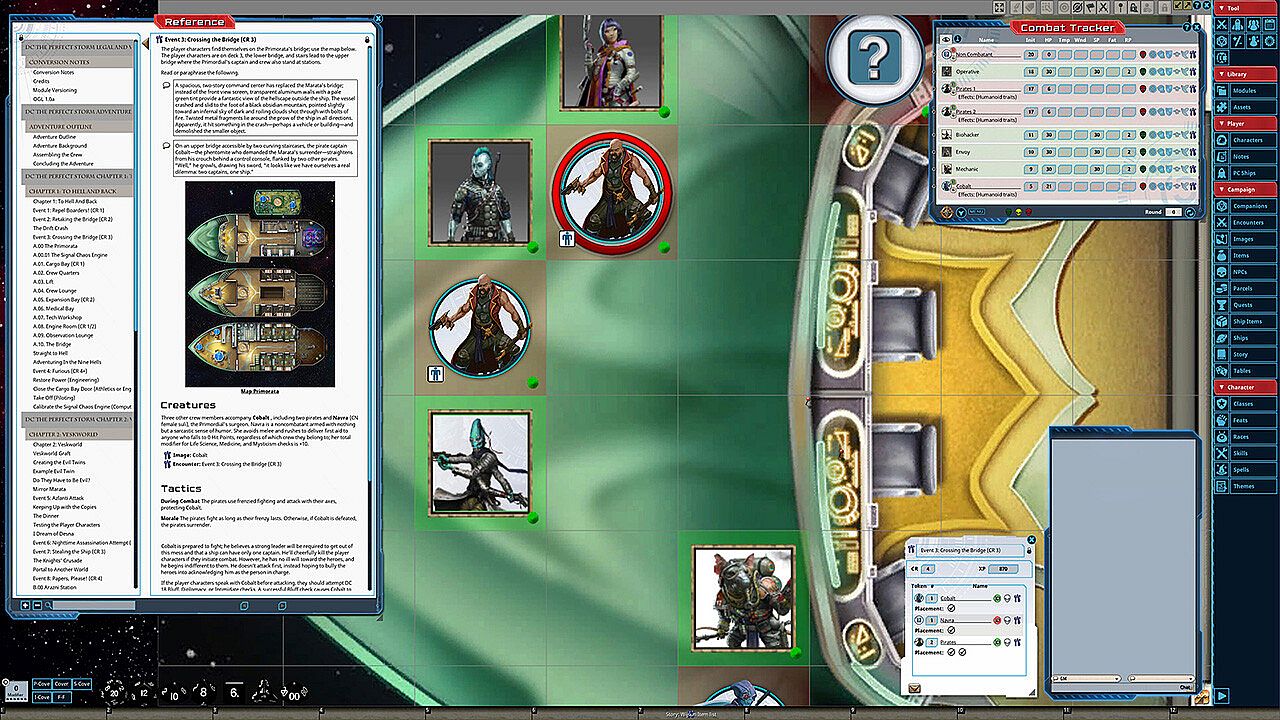 • Tokens for each encounter are all pre-placed in starting locations on the map. You can edit these on the fly.