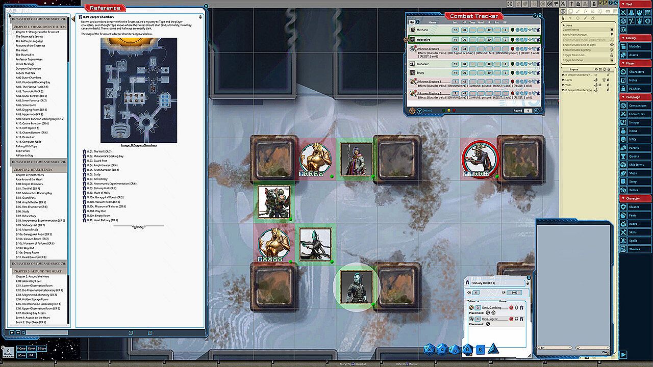 • Tokens for each encounter are all pre-placed in starting locations on the map. You can edit these on the fly.