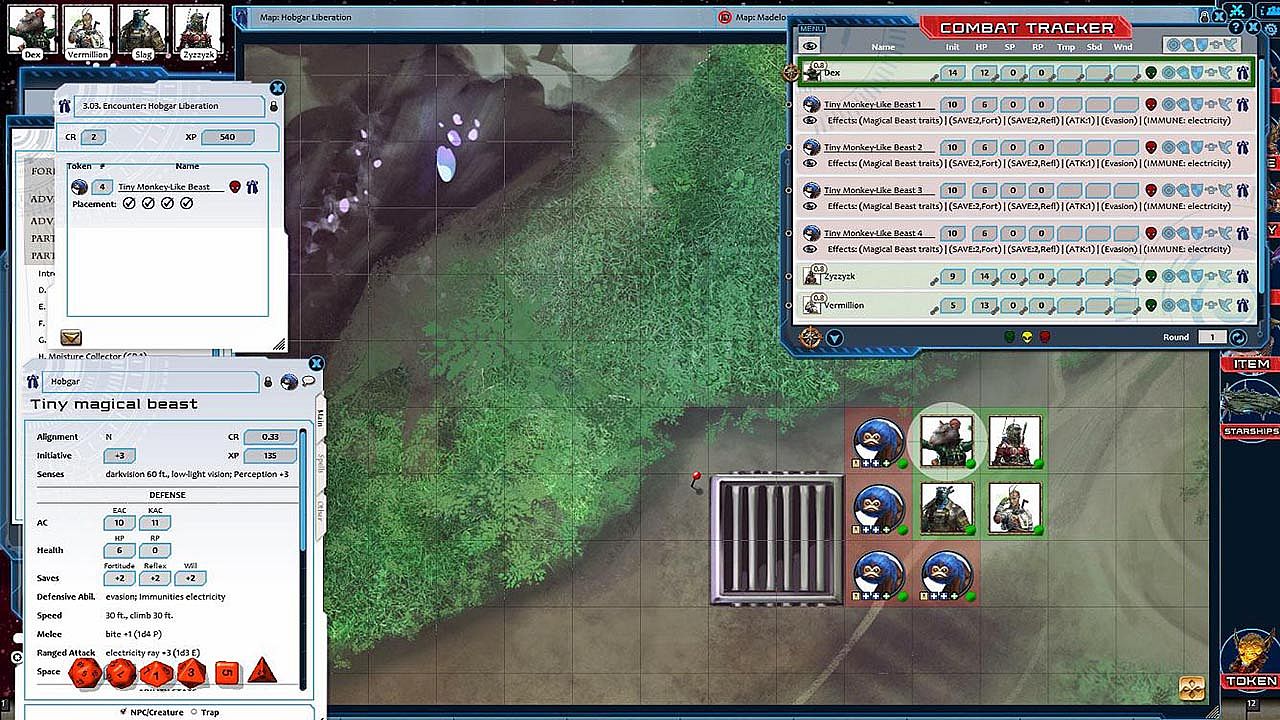 - Tokens for each encounter are all pre-placed in starting locations on the map. You can edit these on the fly.