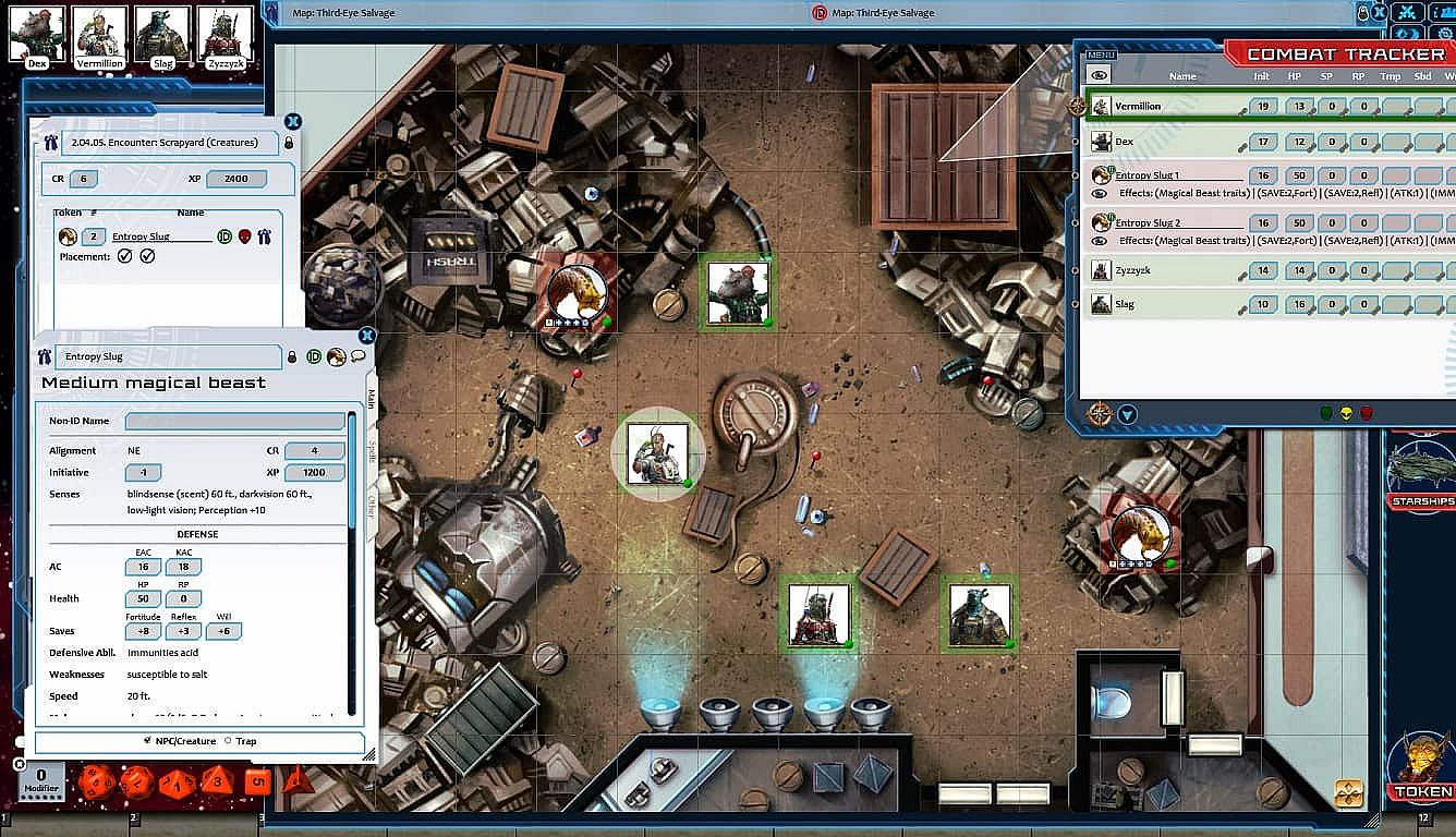 - Tokens for each encounter are all pre-placed in starting locations on the map. You can edit these on the fly.
