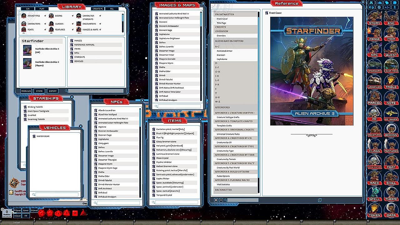 Requires: An active subscription or a one time purchase of a Fantasy Grounds Full or Ultimate license and a one time purchase of the Starfinder ruleset.
