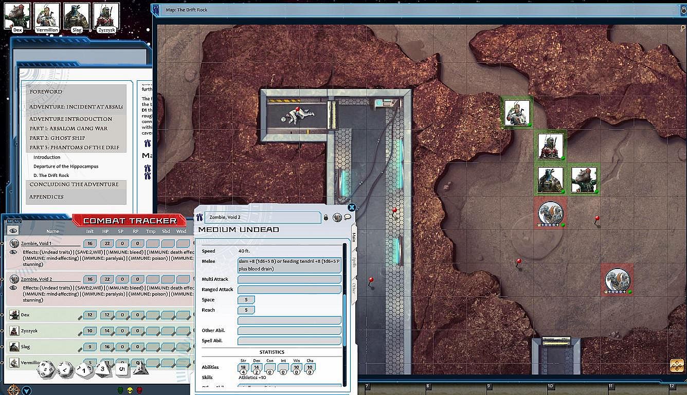 - Tokens for each encounter are all pre-placed in starting locations on the map. You can edit these on the fly.