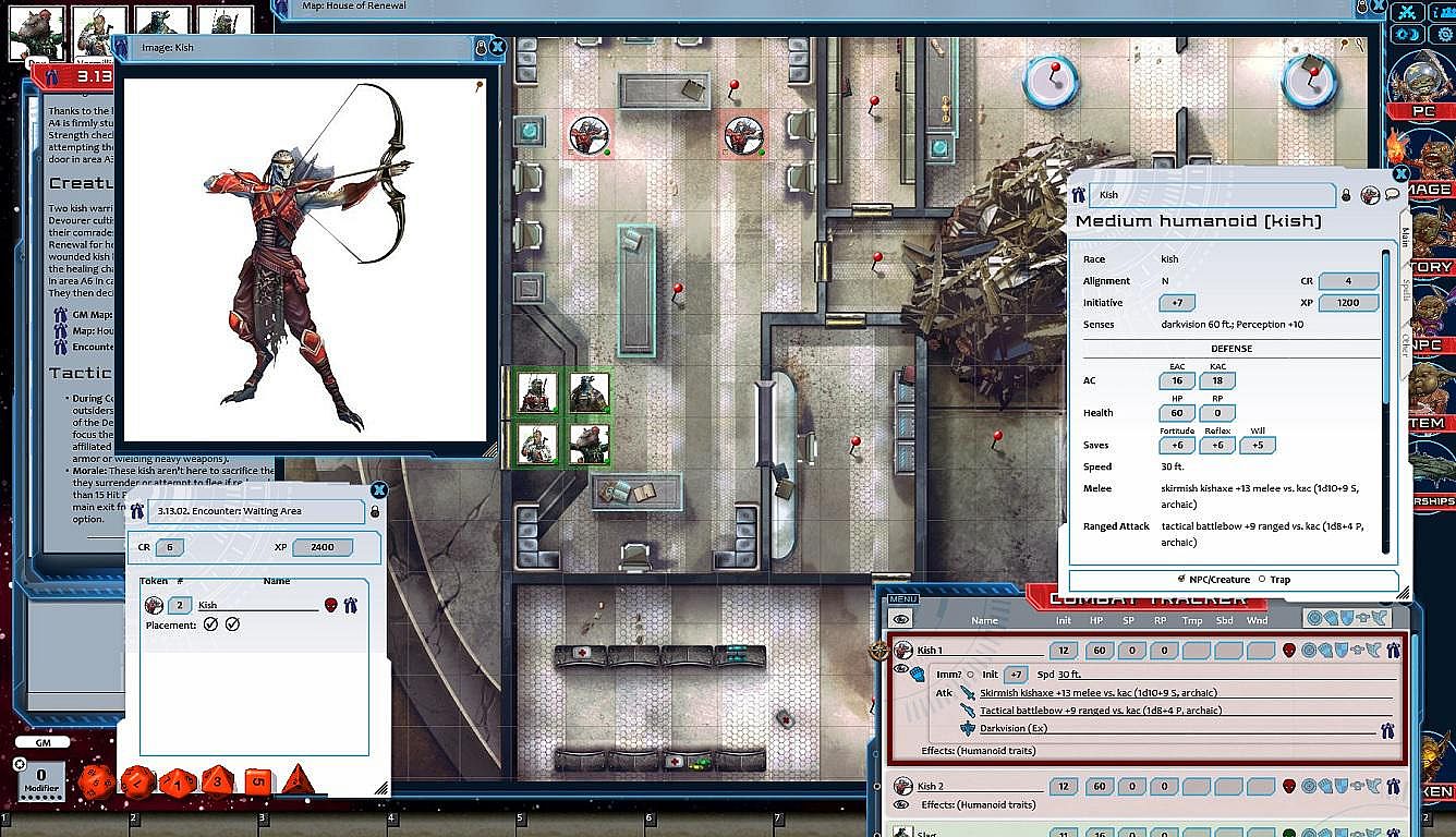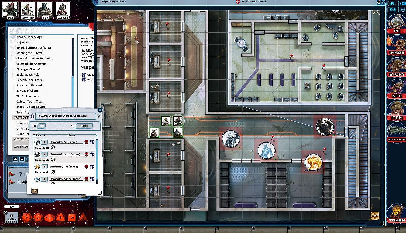• Tokens for each encounter are all pre-placed in starting locations on the map. You can edit these on the fly.