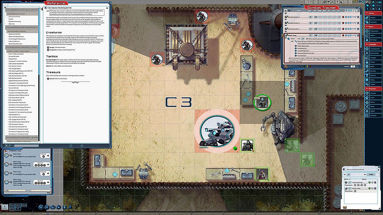 • Tokens for each encounter are all pre-placed in starting locations on the map. You can edit these on the fly.